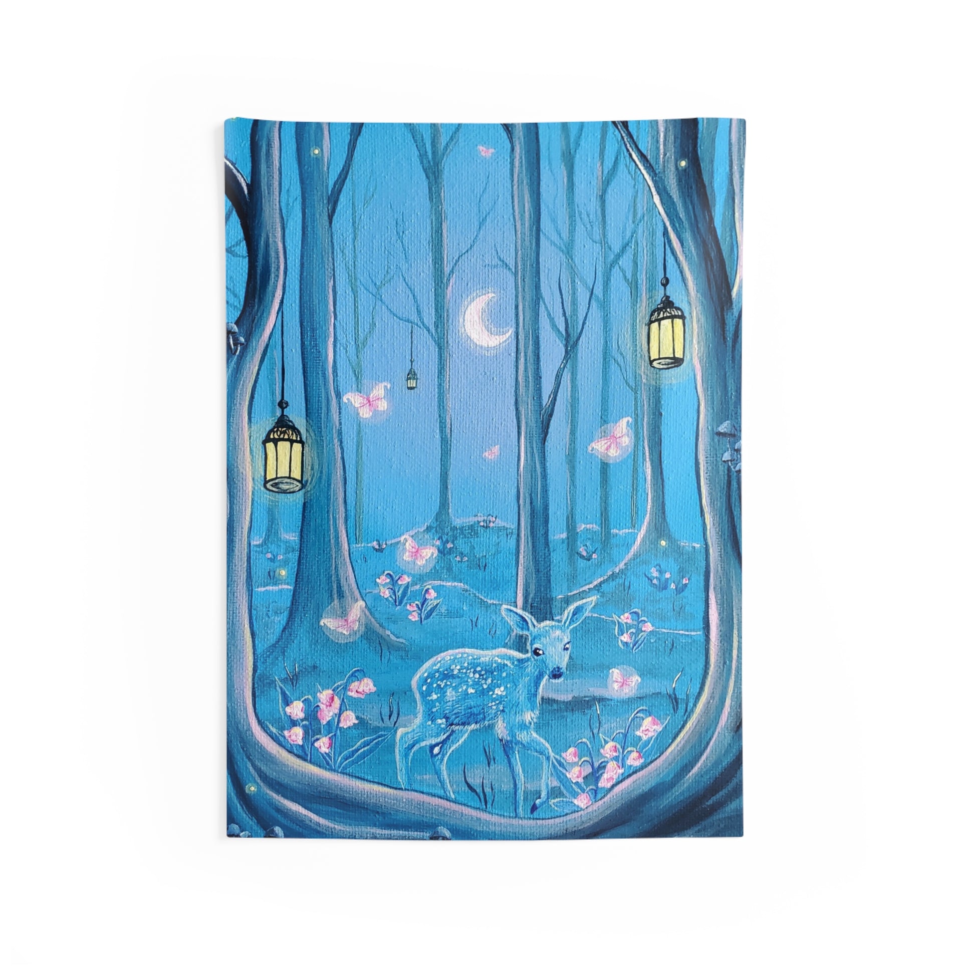 “Deer Fairy Forest” tapestries featured in three different sizes! These feature one of my original acrylic painting designs