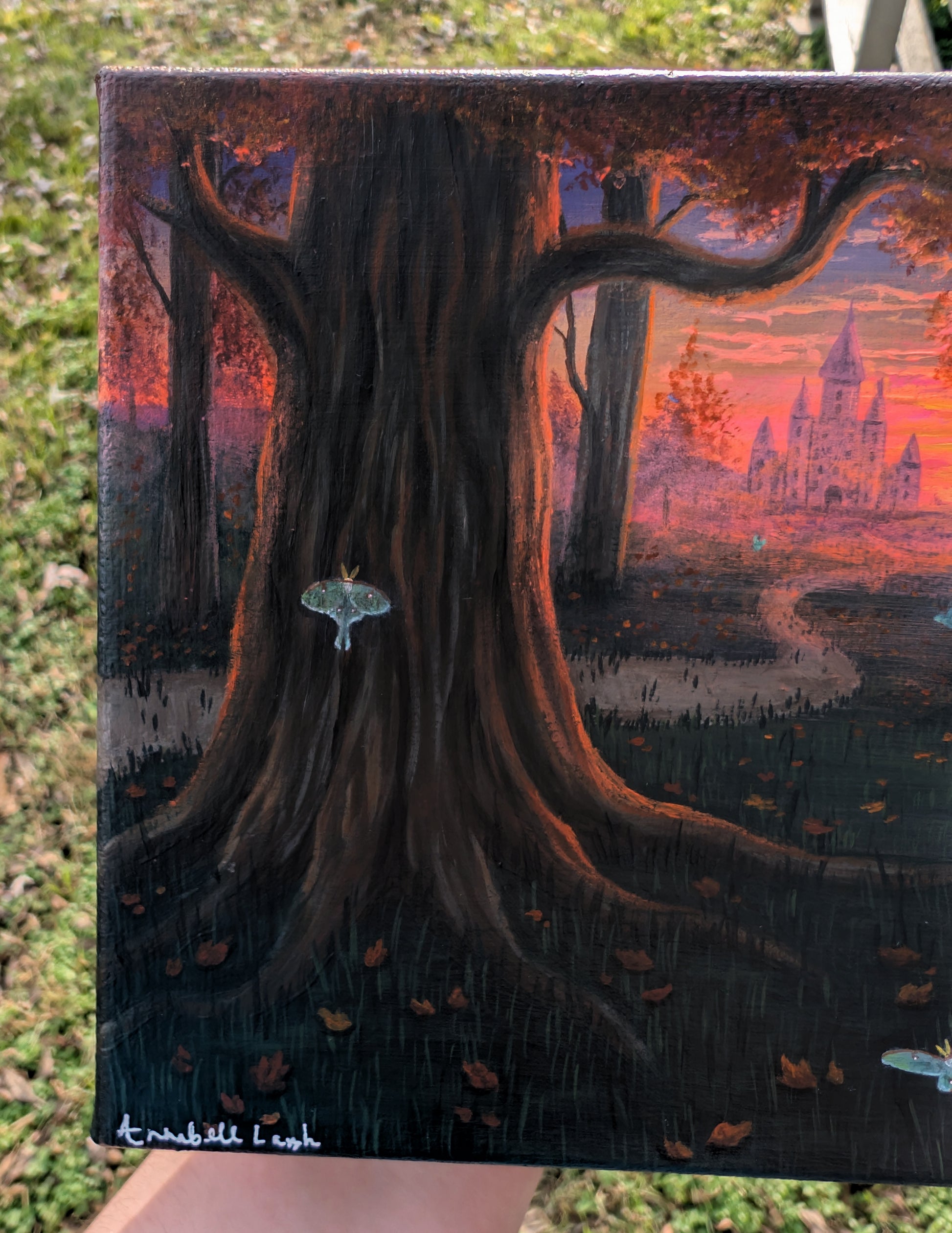 DESCRIPTION: I hand paint my designs with high quality acrylic paints that create vivid saturation and a crisp finish. The piece is sealed with two layers of matte varnish to protect the paint over time. It also adds a gorgeous sheen and cohesive finish to the piece! Hang by tack or nail with no framing needed, the canvas is wood paneled meaning theres 1" of space built into the back to hang on a wall with ease. The piece has been signed and dated along the top of the canvas.