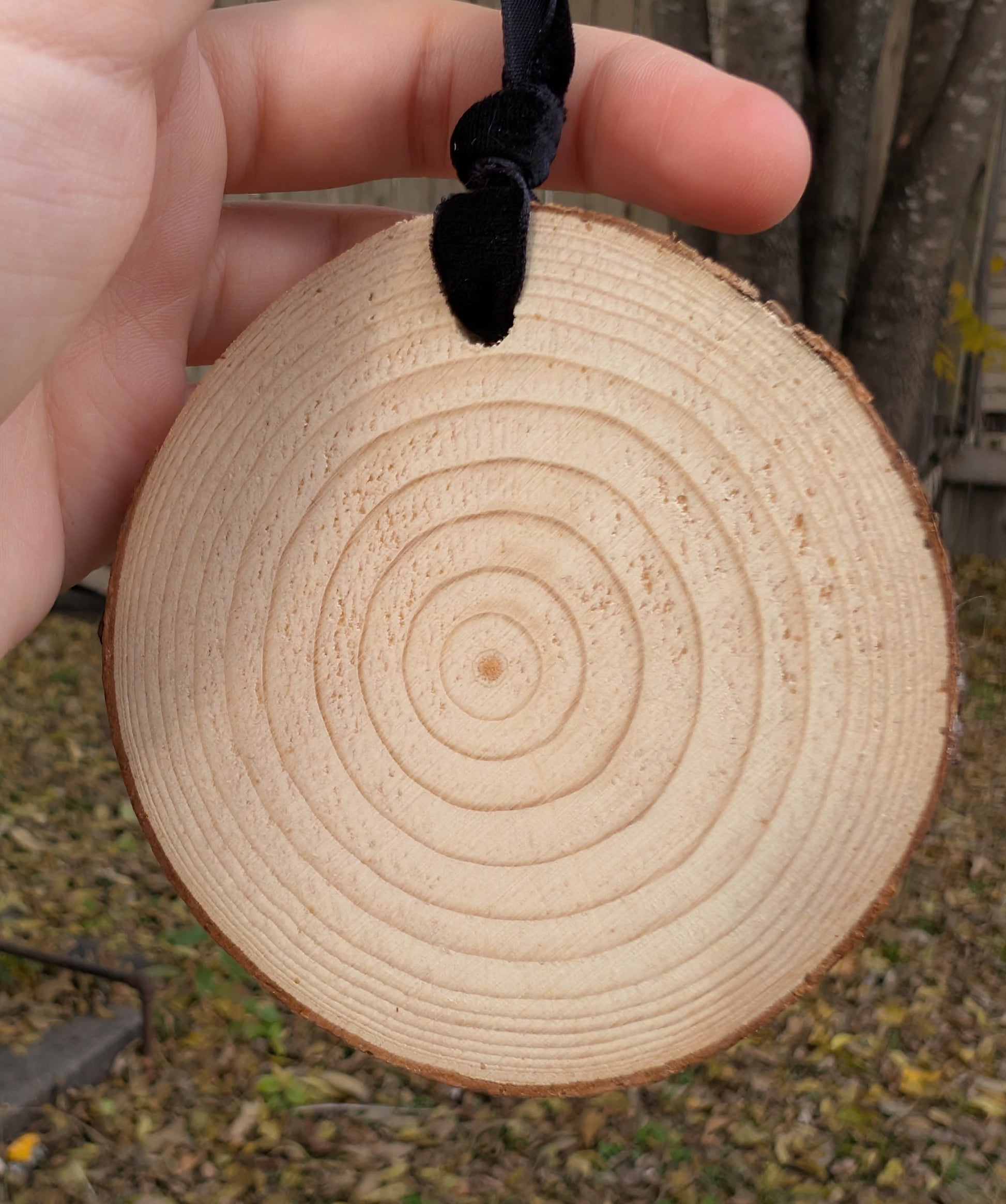 - Wood Slice Approximate Sizing: 3.25" x 3.25" x 0.4" (specific chart below)