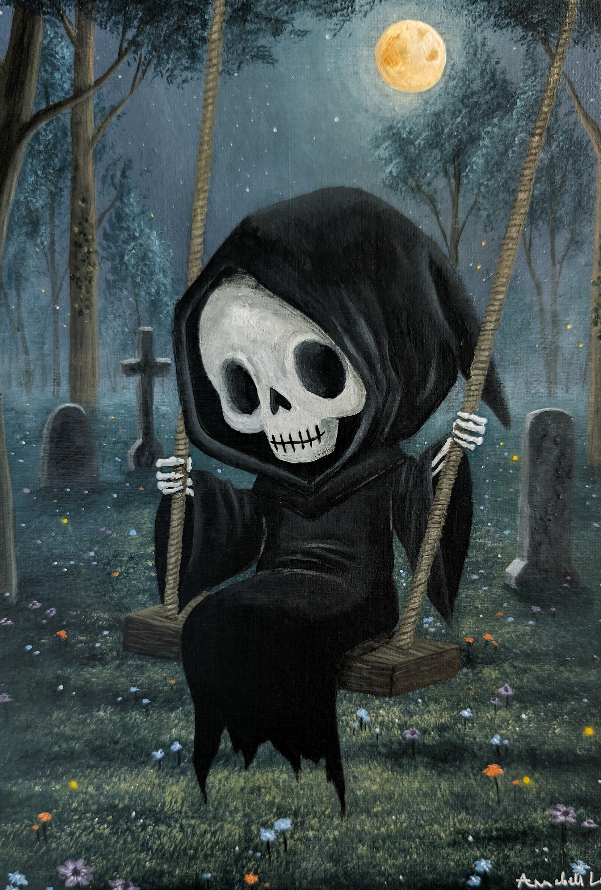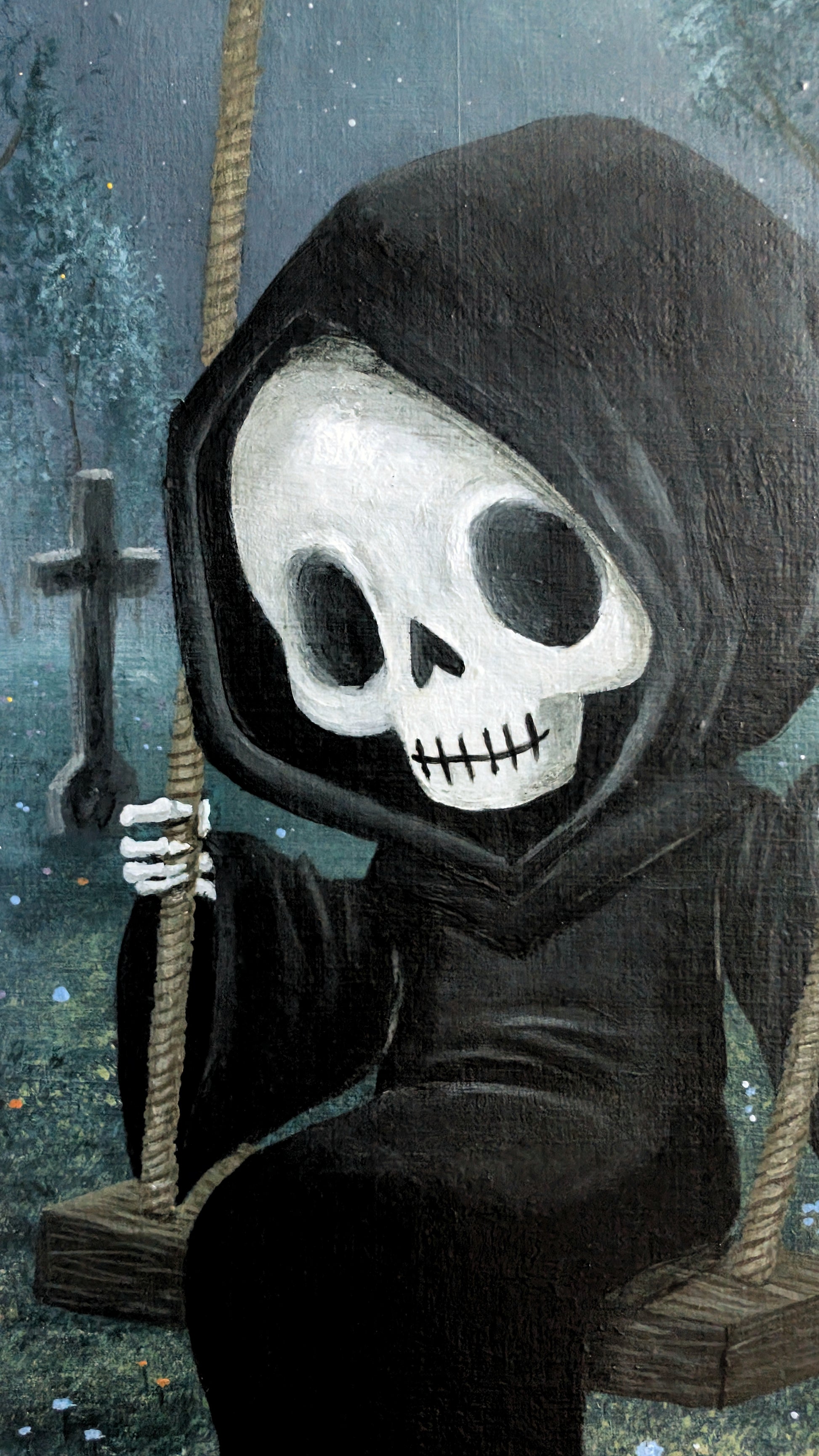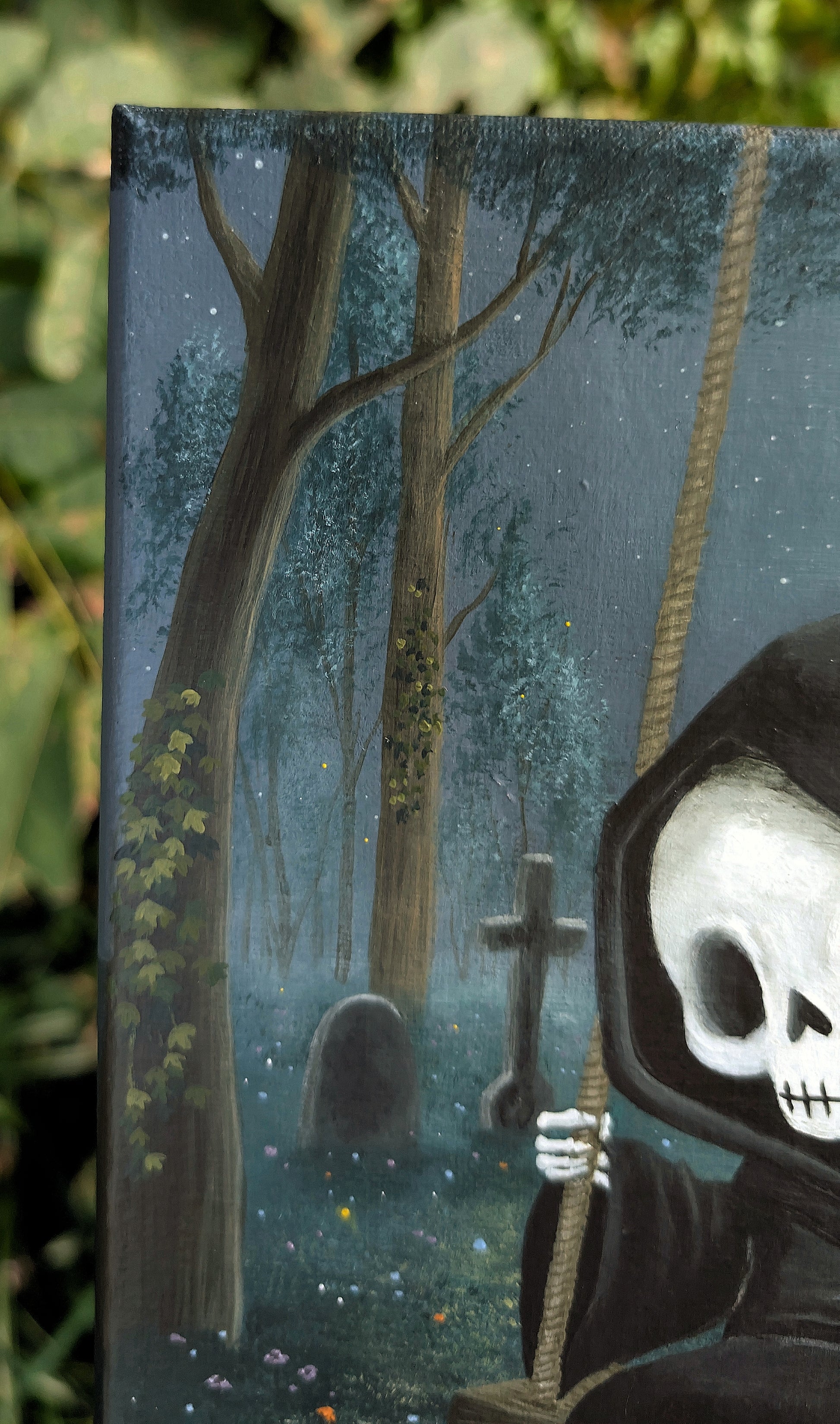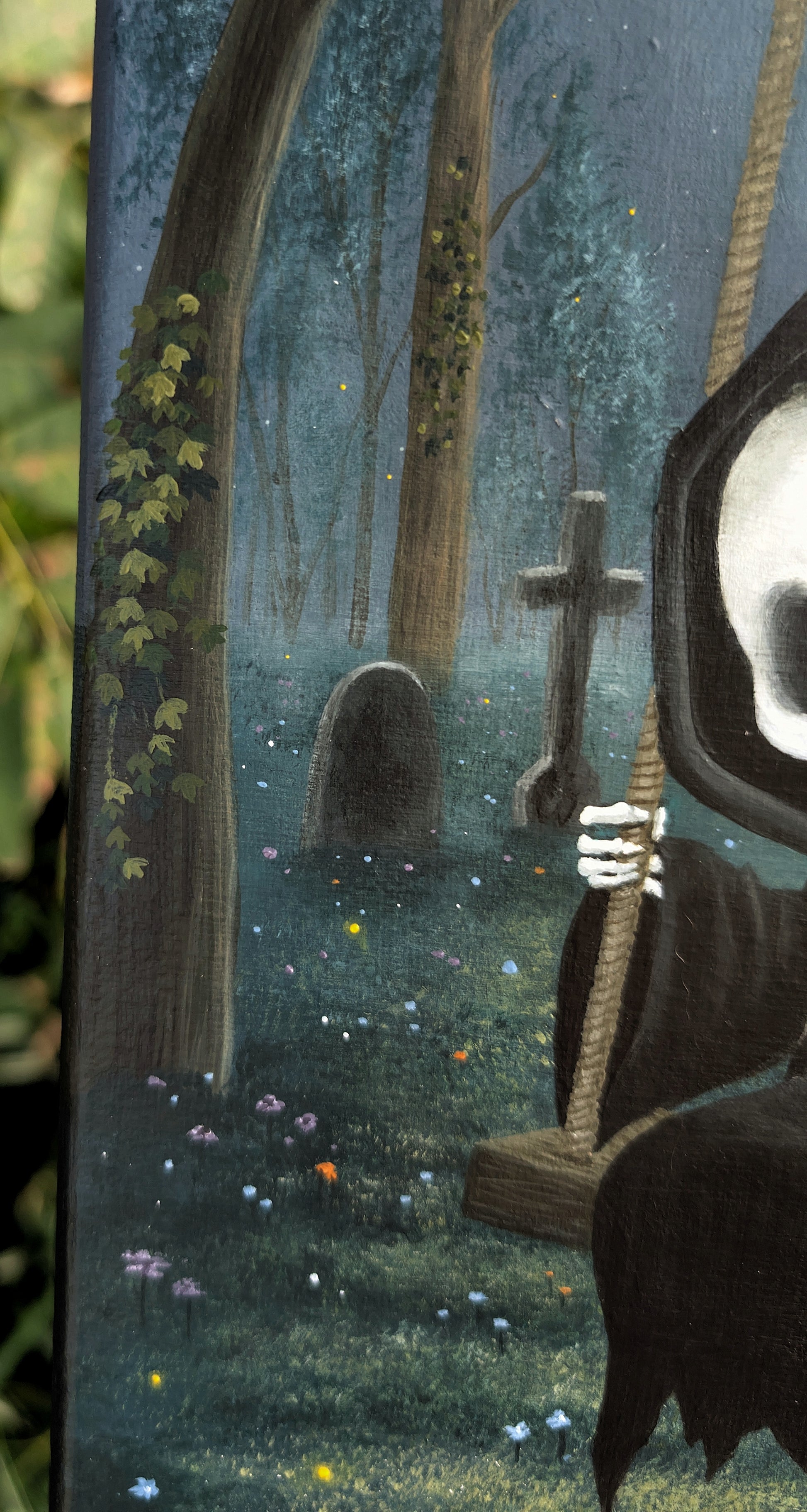 "Grim" Original Painting: Done on 8" x 10" stretch canvas with acrylics, sealed with matte varnish! My rendition of the grim reaper