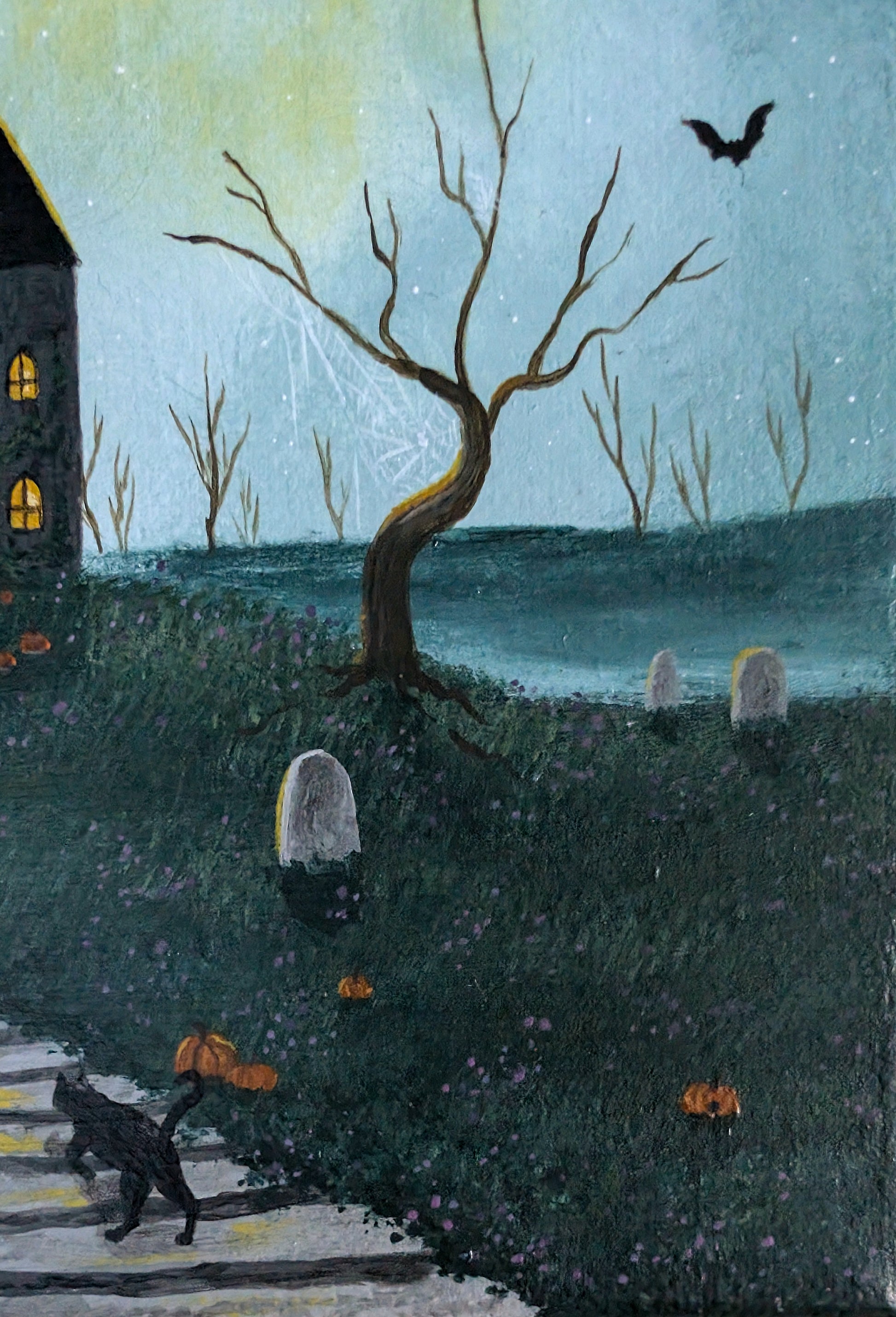 "Halloween Night" 6"x6" Painting: Acrylic on stretched canvas.