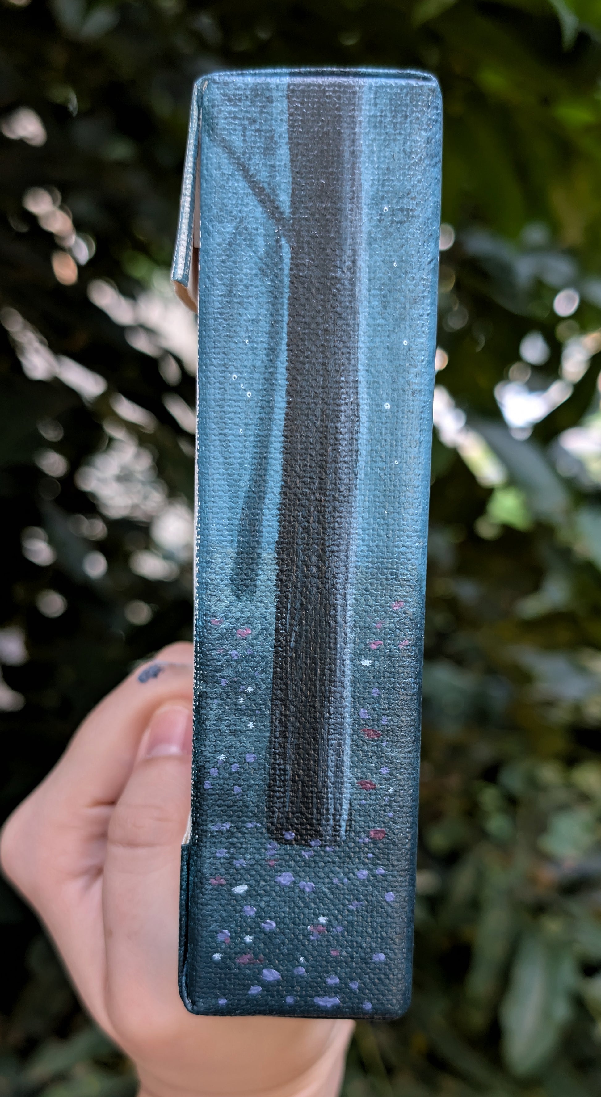 DESCRIPTION: I hand paint my designs with high quality acrylic paints that create vivid saturation and a crisp finish. The piece is sealed with two layers of matte varnish to protect the paint over time. It also adds a gorgeous sheen and cohesive finish to the piece! Hang by tack or nail with no framing needed, the canvas is wood paneled meaning theres 1" of space built into the back to hang on a wall with ease. The piece has been signed and dated along the top of the canvas.