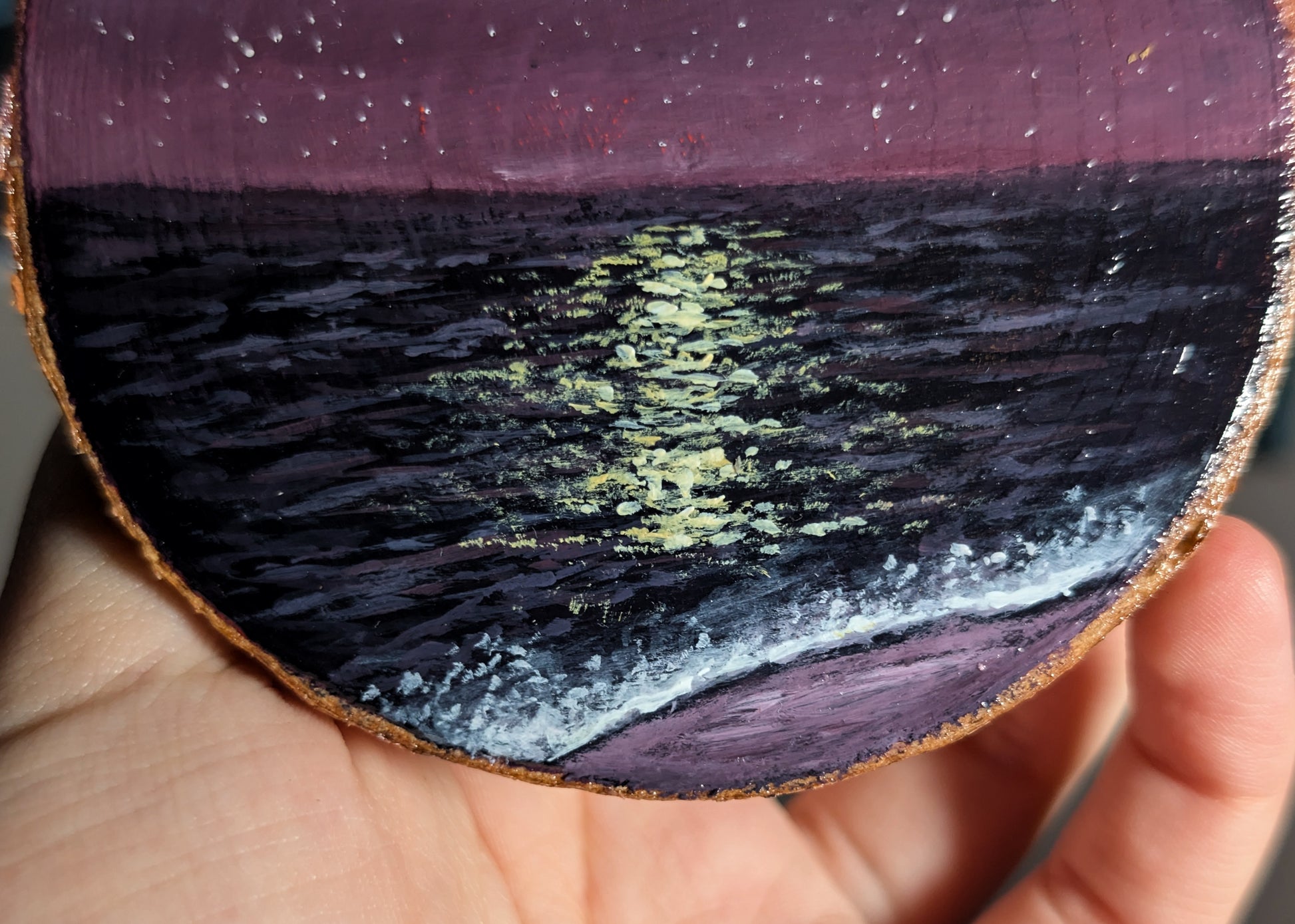 "Ocean Glow" Mini Portal Painting: Acrylic on pine wood.