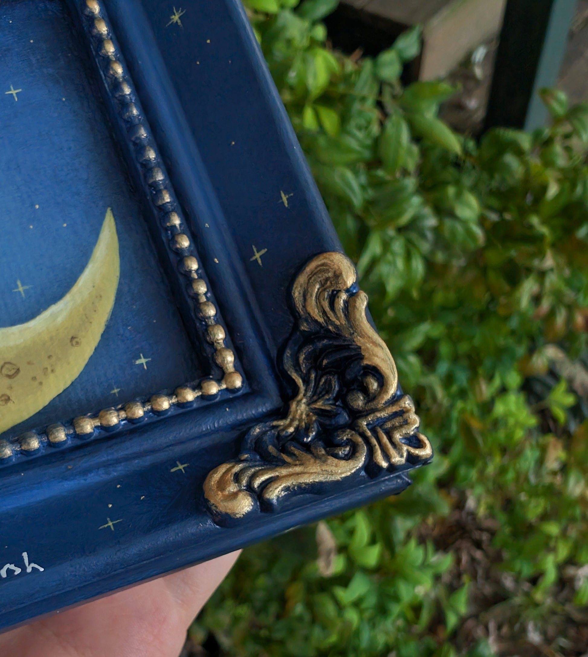 "The Moon" 4.5"x4.5" Painting: Acrylic on acrylic paper and wood frame. Inspired by 90s celestial decor